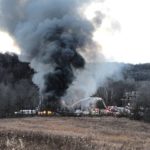 The explosion occurred about 4:25 p.m. at 1528 New Stanton-Ruffsdale Road near New Stanton. Evening commuters headed south on Interstate 70 around 5 p.m. could see the smoke plume from more than two miles away.