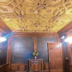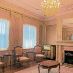 The renovations retained the mansion’s original features, including refinished floors and woodwork, wallpaper, leather wall-coverings and decorative plaster work.