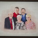 A portrait from their wedding day — Feb. 9, 1952 — hangs next to a photograph from the couple’s 50th wedding anniversary.