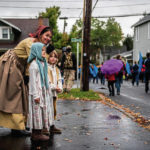 The light rain that came down during Fort Ligonier Days’ annual parade Saturday morning did not prevent thousands of people from crowding both sides of Main Street to watch a procession of bands, fire trucks, bagpipers and French and Indian War reenactors march through town.