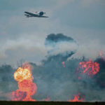 The Tora! Tora! Tora! performance by eight planes of the Commemorative Air Force of Morton, Ill., included a pyrotechnic display of explosions meant to mimic the bombing by Japanese planes. It was accompanied by a narration explaining the attack.