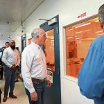 The Youngwood facility has several floors and is filled with high-tech equipment such as 3D printers and workers in a “clean room” working on production. Casey praised a group of workers for manufacturing equipment that is so sophisticated and that “almost no one else in the world can make.” He said he wants to help make sure the company is given help to expand.
