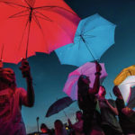 The event at UPMC Field at Saint Vincent College in Unity was presented by the famed Pilobolus dance company and the Arnold & Winnie Palmer Foundation. Saint Vincent students holding color-changing LED umbrellas moved to music and solved puzzles to “visually manifest the beauty of cooperation,” the organizers said.
