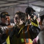 “I don’t know most of you, but I love you all,” she told those seated under a tent or standing beneath a rain-filled sky. “Thank you so much everybody for your support.”