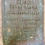 According to county engineer Vaughn Neill, the older plaque “was on one wall they had to cut out to adapt to the new construction.” The later plaque was added during the 1974 construction of a deck that was replaced, along with bridge beams, in the most recent work.