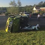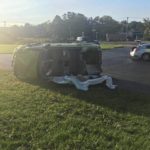 The Ford Escape came to rest with the driver’s side of the vehicle on the pavement of the parking lot of the Lazor Furniture store, which sits between the eastbound and westbound lanes of the highway. The other vehicle was off to the side of the eastbound lanes, which freed one lane of the eastbound traffic to proceed along the busy highway.