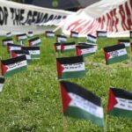 There are Palestinian flags set up in a perimeter around the encampment as a memorial displaying the names of kids who were killed by Israeli bombs and missiles, she said. Throughout the encampment, there will be various scheduled events like meetings, speakers, poetry readings, zine and sign making, kite flying and other activities.