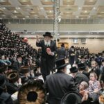 Ultra-Orthodox Jews from the Belz Hasidic dynasty receive fruits during celebrations marking the Jewish holiday of Tu Bishvat, the “New Year of the Trees,” in Jerusalem, Monday. (AP)