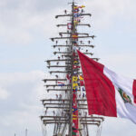 The crew of the Union, a tall ship from Peru, climbs the masts as it sails with hundreds of tall ships into the Dutch capital’s harbor for the 10th edition of SAIL, in Amsterdam, Netherlands, on Wednesday.