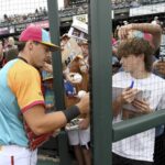 The Curve’s Konnor Griffin signs autographs for fans before making his Class AA debut on Tuesday, at PNG Field in Altoona.