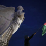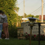 People visit a make-shift memorial at Annunciation Catholic Church after Wednesday’s school shooting, Thursday in Minneapolis.