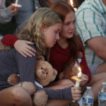 People gather at a vigil at Lynnhurst Park after a shooting at the Annunciation Catholic School, Wednesday in Minneapolis.