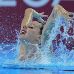Iris Tio Casas of Spain competes in the women’s solo free final of artistic swimming at the World Aquatics Championships in Singapore, Tuesday, July 22, 2025. (AP Photo/Vincent Thian)