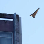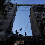 A Russian drone attacks a building during Russia’s massive missile and drone air attack in Kyiv, Ukraine, Tuesday.