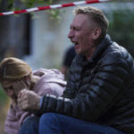 A father cries as his son is under the rubble of a multi-storey residential house destroyed by a Russian strike in Kyiv, Ukraine, on Tuesday.