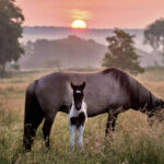 An Icelandic mare and her foal stand on a meadow at a stud farm in Wehrheim near Frankfurt, Germany, Tuesday.