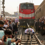Egyptian wrestler Ashraf Mahrous, better known as Kabonga, pulls a train for nearly 33 feet at Ramses Station in Cairo, Egypt, as he is watched by Guinness World Record observers on Thursday.