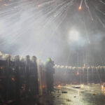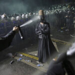 Riot police officers use pepper spray to clear a protester during a protest after Istanbul’s Mayor Ekrem Imamoglu was arrested and sent to prison, in Istanbul, Turkey, Sunday.