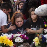 Family members of victim Jason Gomez mourn during a vigil at Young Park in Las Cruces, N.M., on Sunday.
