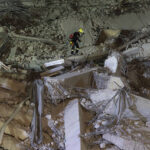 A rescuer looks for survivors at the site of an under-construction high-rise building that collapsed after an earthquake in Bangkok, Thailand, on Monday.
