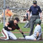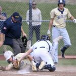 Norwin catcher Trevor Vitsas tags out Butler’s Boden Lenyk at home plate during their WPIAL Class 6A quarterfinal on Monday at North Allegheny.