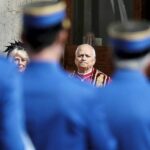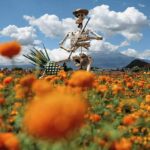A giant skeleton figure called “Jimador”, built by local artisans to represent a man dedicated to agave farming, is exhibited in a marigold field during Day of the Dead celebrations, as the Popocatepetl volcano stands in the background, in Atlixco, Mexico, on Wednesday.