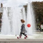A child dressed as Pennywise, the clown from Stephen King’s “It,” walks around a fountain during a Halloween trick-or-treat event in Old Town Alexandria, Virginia, on Saturday.