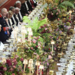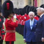 Britain’s King Charles III, center left, speaks at a State Banquet during a State visit of President Donald Trump at Windsor Castle in Windsor, England, Wednesday.