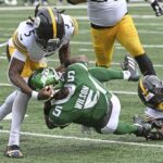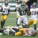 The Steelers’ Ben Skowronek recovered a fumble on a Jets fumble on a fourth-quarter punt return Sunday at MetLife Stadium.