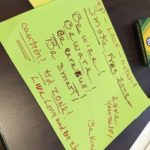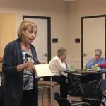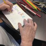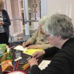 Seated at tables off the lobby area of South Greengate Commons, a Westmoreland County Housing Authority property for seniors, residents use markers, scissors and poster board to create “table tent” messages.
