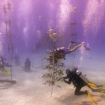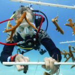 Reef Renewal was among those who initially worked to move endangered coral into land-based facilities. More recently, they’ve worked to save coral in several of their own underwater nurseries in shallower water by moving them to deeper, cooler water, where they hang pieces of coral from tree-like structures.