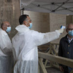 Guards in hazmat suits took the temperature of the faithful entering St. Peter’s Basilica, where Pope Francis celebrated an early morning Mass for a handful of people in a side chapel to commemorate the centenary of the birth of St. John Paul II.
