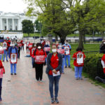 Now: nurses from National Nurses United protest lack of PPE outside the White House while holding signs showing pictures of their colleagues who have died of coronavirus. They’re standing on X’s 6 ft apart to maintain social distancing. pic.twitter.com/Os8r2DsZ6z