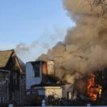 The house was then set on fire, he said. Intense flames were initially seen rising from the roof and top floor of the three-story home before spreading to the lower levels, largely gutting the structure.