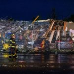 A video posted on Twitter shows a building at the dealership collapsed, with emergency sirens abound.