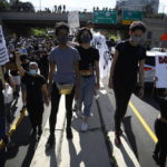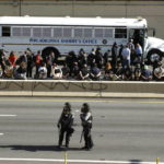 PHILADELPHIA — Hundreds of people protesting the police treatment of black people spilled onto an interstate highway in the heart of Philadelphia on Monday afternoon just before a curfew took effect, leading law enforcement to fire nonlethal bullets and tear gas and halting traffic during the evening rush hour.
