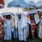 High priests celebrate Timket, the Ethiopian Epiphany, on the shore of lake Dembel, in Batu, Ethiopia, Sunday. (AP)