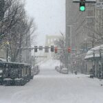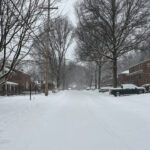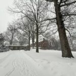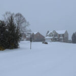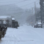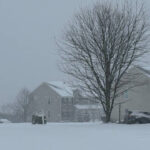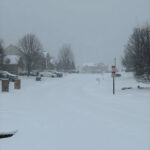 Snowfall blankets streets and homes across the area, creating scenic winter views while reminding residents to slow down and take care on the roads.