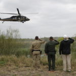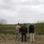 At a border patrol facility, he surveyed mounds of drugs and weapons seized by agents. He hugged tearful families who spoke of relatives killed by those in the United States illegally. He traveled to a dusty bluff above the Rio Grande and saluted a border patrol helicopter as it flew past.