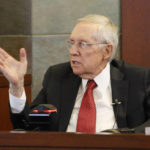 LAS VEGAS — Former U.S. Sen. Harry Reid told a Nevada jury Thursday that his career was cut short by injuries he suffered when a TheraBand exercise device slipped from his hand and he fell in his home bathroom in 2015.