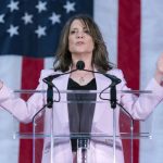 Williamson said she was opposing a free market “mindset” and corrupt political system that she said prioritized greed above all else “like an atomizer spray of economic injustice.”