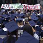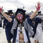 On Sunday, dozens of George Washington University graduates walked out of commencement ceremonies, disrupting university President Ellen Granberg’s speech, in protest over the ongoing siege of Gaza and last week’s clearing of an on-campus protest encampment that involved police use of pepper spray and dozens of arrests.
