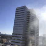The fire left windows blown out and heavy black smoke or burn marks on three sides of building. Residents who fled in whatever they wearing or could quickly get into — some in pajamas and exercise clothes — gathered on nearby street corners and looked up as helicopters hovered and hoisted rooftop evacuees and small white dog to safety.