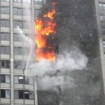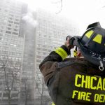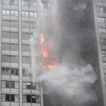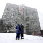CHICAGO — Chicago authorities said one person has died and eight others were taken to hospitals Wednesday as firefighters responded to a high-rise apartment building fire on the city’s South Side, battling flames that leaped up 10 floors as snow fell.