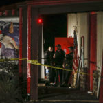Outside the venue Sunday, a few Halloween masks and other debris were strewn about. Pools of blood could be seen on the ground.