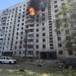 At least 41 people were wounded Sunday afternoon when a Russian aerial bomb struck a multistory residential building in Kharkiv, Mayor Ihor Terekhov said, adding that the guided bomb hit the 10th floor of the building, with the fire spreading across four stories. Twelve other buildings were also damaged, he said.