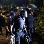 Around midnight, police ran down the street, pushing protesters out of the area, knocking people down and arresting those who they say were not following orders — as some people were being detained, they were pinned to the ground and blood could be seen marking the pavement. Law enforcement officers used smoke devices and shot impact munitions and stun grenades while trying to get the crowd to disperse, The Oregonian reported.