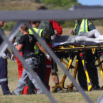 His video showed a wall of ash and steam around White Island and a helicopter badly damaged and covered in ash. He said one woman was badly injured but seemed “strong” by the end.