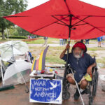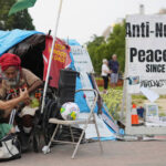 The vigil was started in 1981 by activist William Thomas to promote nuclear disarmament and an end to global conflicts. It is believed to be the longest continuous anti-war protest in U.S. history. When Thomas died in 2009, other protesters like Melaku-Bello manned the tiny tent and the banner, which read “Live by the bomb, die by the bomb,” around the clock to avoid it being dismantled by authorities.