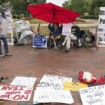 “The difference between an encampment and a vigil is that an encampment is where homeless people live,” Melaku-Bello said. “As you can see, I don’t have a bed. I have signs and it is covered by the First Amendment right to freedom of speech and freedom of expression.”